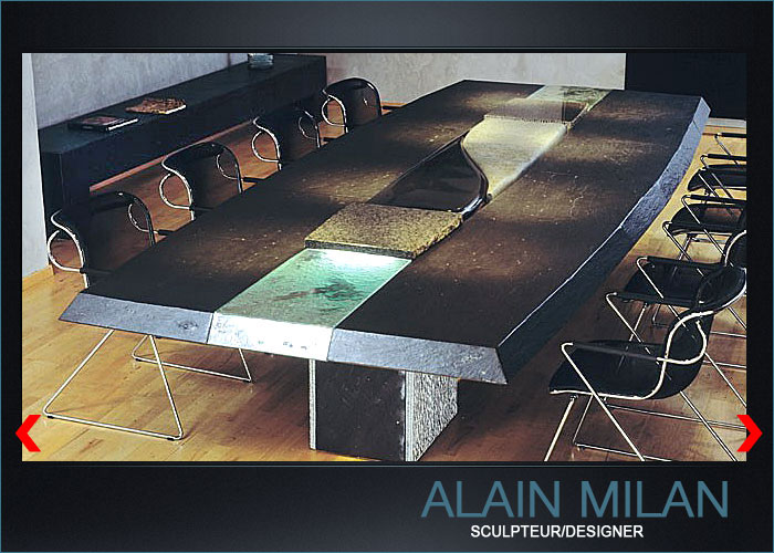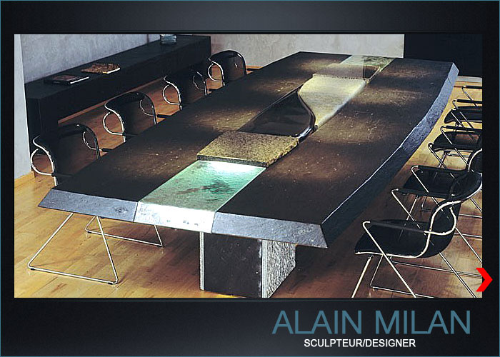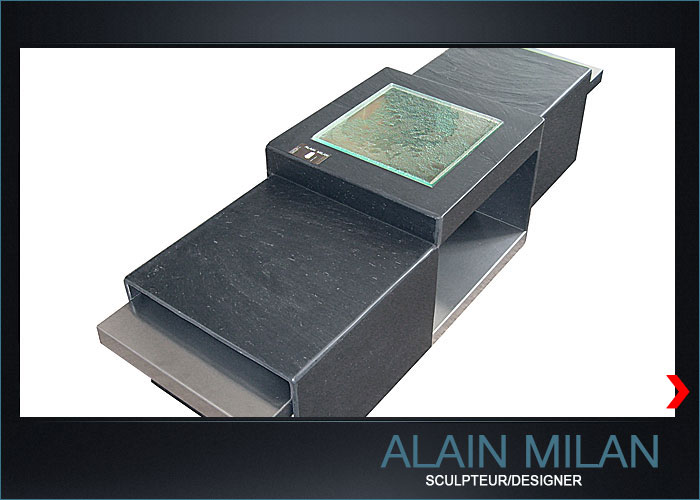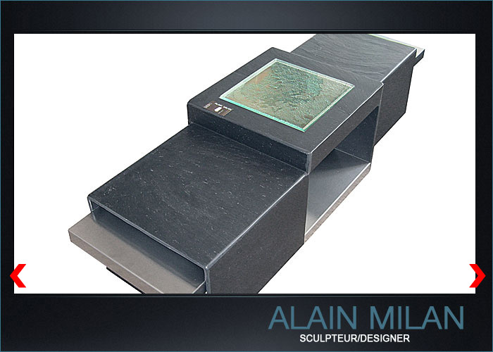 Sans souci de la dimension, j'interroge ces espaces et associe le schiste au verre et au métal et révéle ainsi leur étonnante modernité dans un geste décidé, préconçu, exempt de tout préjugé.
